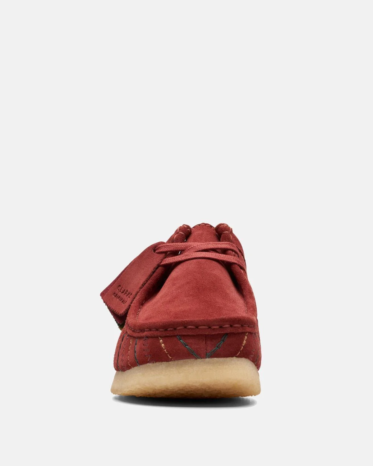 Sound the drums this season with a pair influenced by Clarks' connections to Jamaica. Crafted with soft suede uppers in a rich burgundy hue, intricate embroidery brings a textural element to the pinstripe pattern – while our inimitable natural crepe sole takes style cues from the original Wallabee. Â